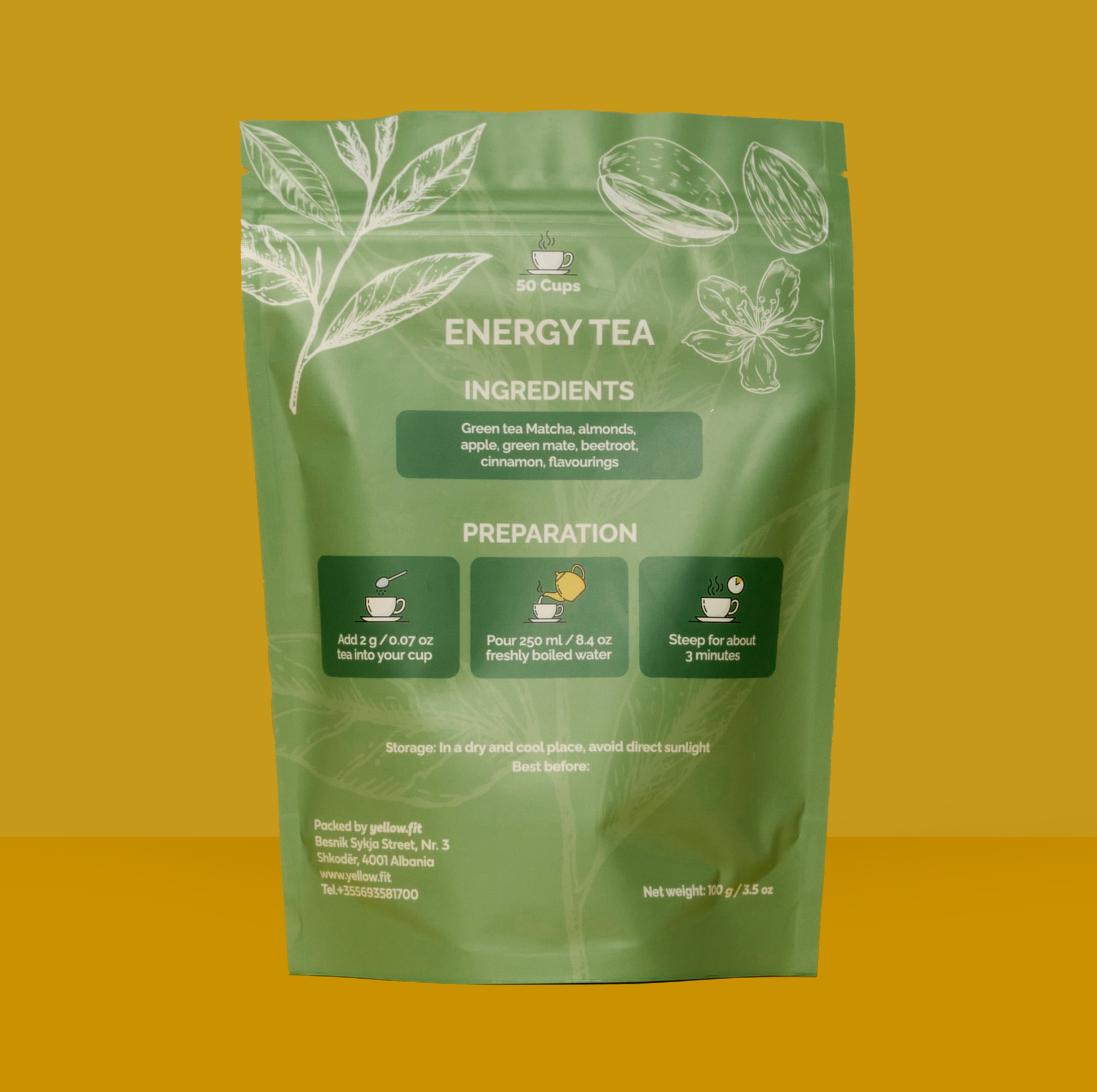 Përbërësit: Çaj jeshil Matcha, bajame, mollë, bimë Mate, panxhar, kanellë